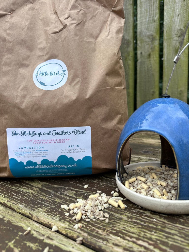 And whilst I’m cosy indoors painting I’ve been making sure to keep my feathered friends well fed too. I’ve been using a special seasonal blend of food from A Little Bird co which the birds just love! It’s tailored to suit their needs at different stages of the year so currently there is plenty of high-energy foods to support their feather regrowth after they finish their moult.